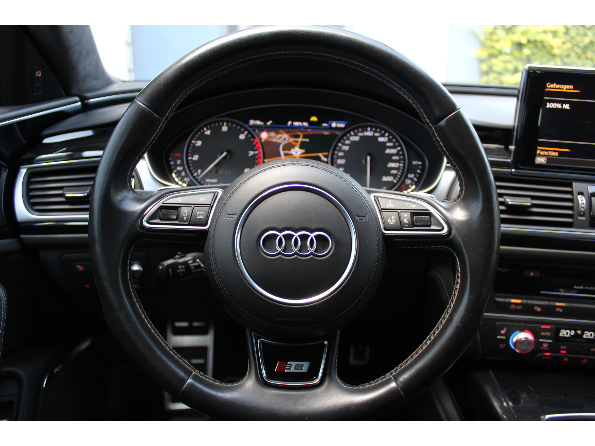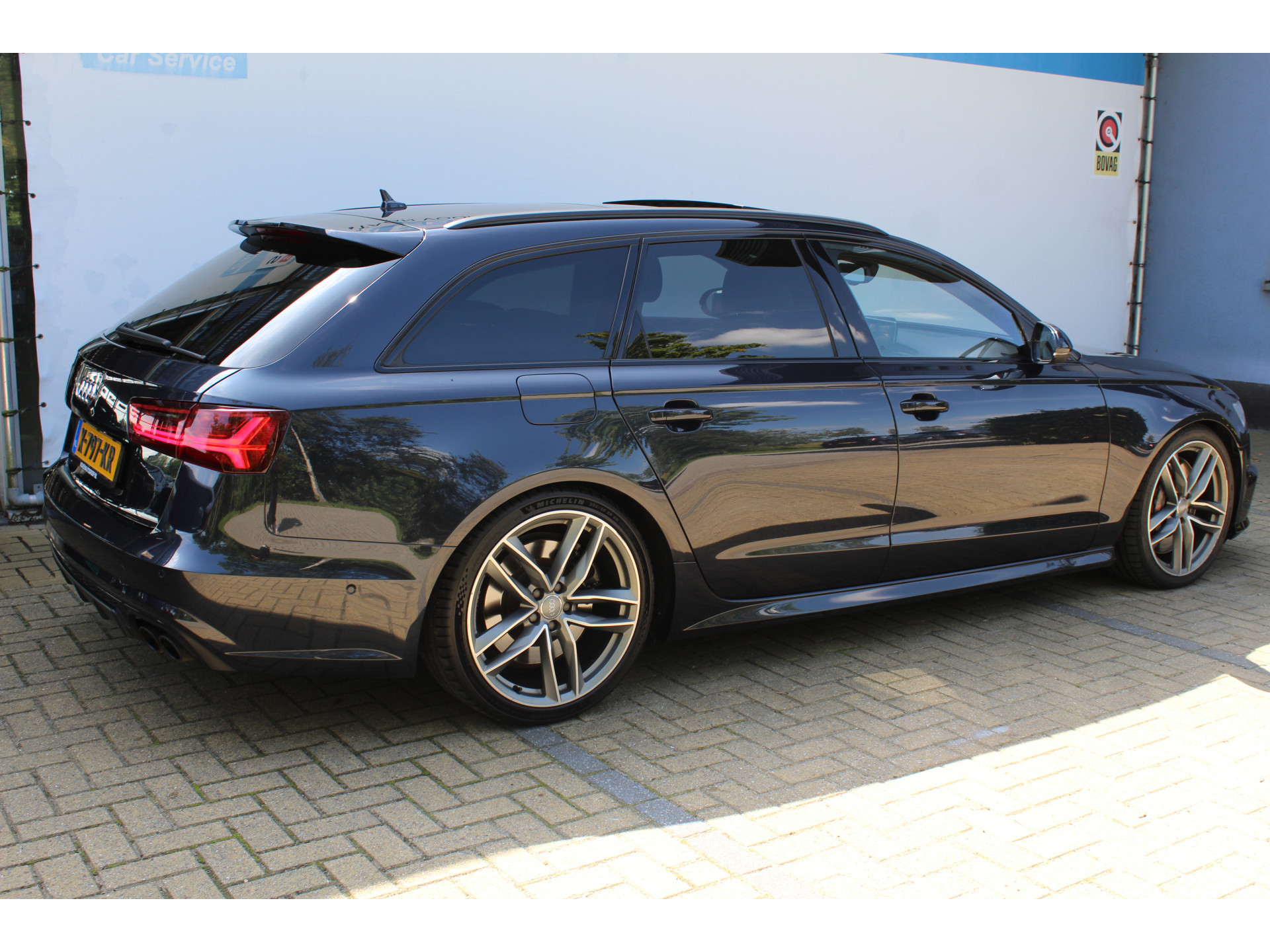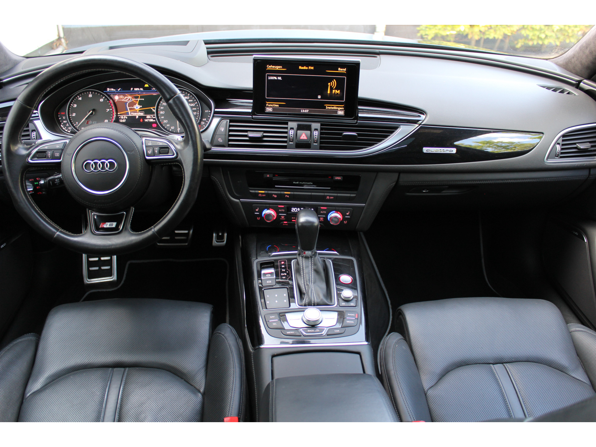 Ontspannen en zorgeloos autorijden, dat doet u met deze Audi S6 Avant. Deze auto uit het bouwjaar 2015 heeft 147196 kilometer gelopen. Met de S-Line styling laat dit model zich van zijn meest dynamische kant zien. De aandrijving wordt verzorgd door een achtcilinder benzinemotor en een automatische transmissie. Zon en frisse lucht krijgen vrij spel dankzij het elektrisch bediende glazen panorama dak; de elektrisch bedienbare achterklep maakt het u gemakkelijk en u voelt zich omgeven door luxe van het lederen interieur! Zelfs op de koudste dagen zorgen de stoelverwarming met massagefunctie, stuurverwarming en verwarmbare achterbank voor een comfortabele rijervaring. Zit u goed? De stoelen zijn eenvoudig instelbaar dankzij de elektrische bediening met geheugen. De koplampen zijn voorzien van matrix LED-verlichting waarmee u aanzienlijk verder kan kijken in het donker. Het systeem past zelf de lichtstraal aan op het moment tegenliggers verblind kunnen worden. U wordt in deze auto ook getrakteerd op 20 inch lichtmetalen velgen, sportonderstel, adaptief dempingsysteem, zwarte hemelbekleding, donker getint glas achter en in delen neerklapbare achterbank.