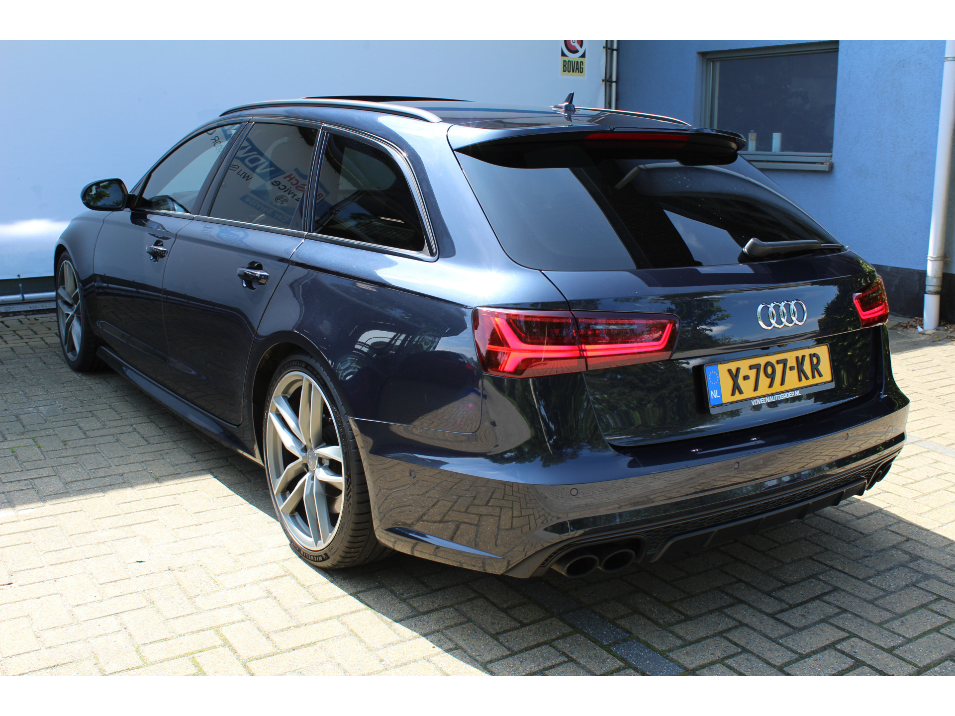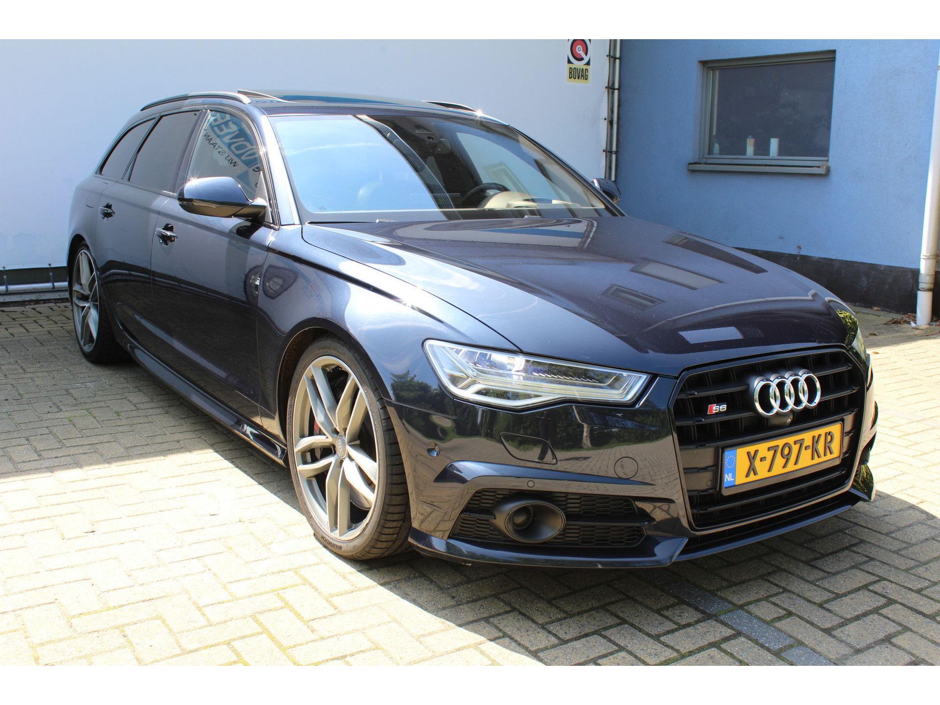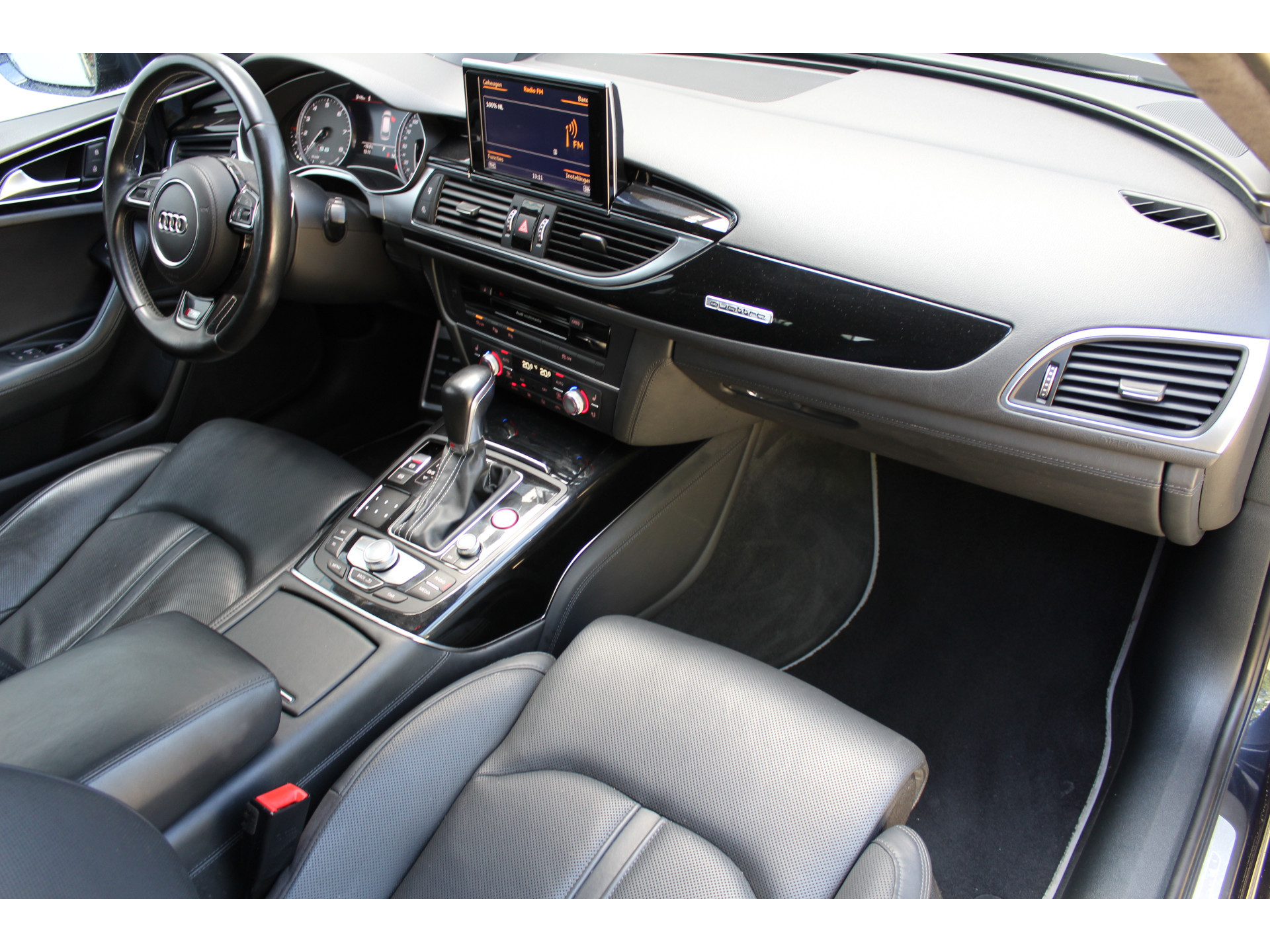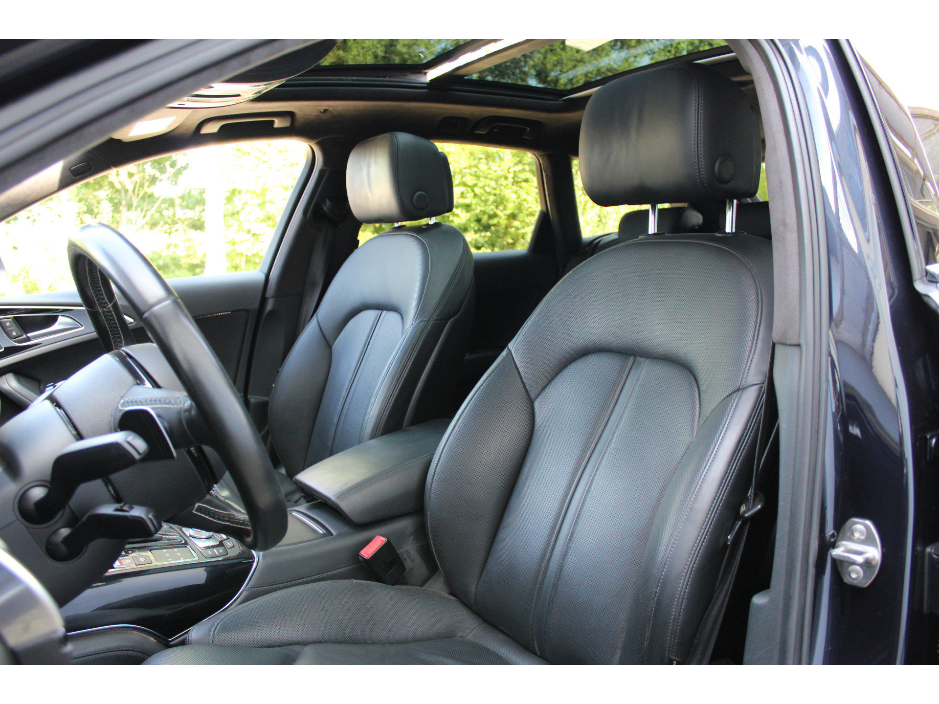 Ontspannen en zorgeloos autorijden, dat doet u met deze Audi S6 Avant. Deze auto uit het bouwjaar 2015 heeft 147196 kilometer gelopen. Met de S-Line styling laat dit model zich van zijn meest dynamische kant zien. De aandrijving wordt verzorgd door een achtcilinder benzinemotor en een automatische transmissie. Zon en frisse lucht krijgen vrij spel dankzij het elektrisch bediende glazen panorama dak; de elektrisch bedienbare achterklep maakt het u gemakkelijk en u voelt zich omgeven door luxe van het lederen interieur! Zelfs op de koudste dagen zorgen de stoelverwarming met massagefunctie, stuurverwarming en verwarmbare achterbank voor een comfortabele rijervaring. Zit u goed? De stoelen zijn eenvoudig instelbaar dankzij de elektrische bediening met geheugen. De koplampen zijn voorzien van matrix LED-verlichting waarmee u aanzienlijk verder kan kijken in het donker. Het systeem past zelf de lichtstraal aan op het moment tegenliggers verblind kunnen worden. U wordt in deze auto ook getrakteerd op 20 inch lichtmetalen velgen, sportonderstel, adaptief dempingsysteem, zwarte hemelbekleding, donker getint glas achter en in delen neerklapbare achterbank.