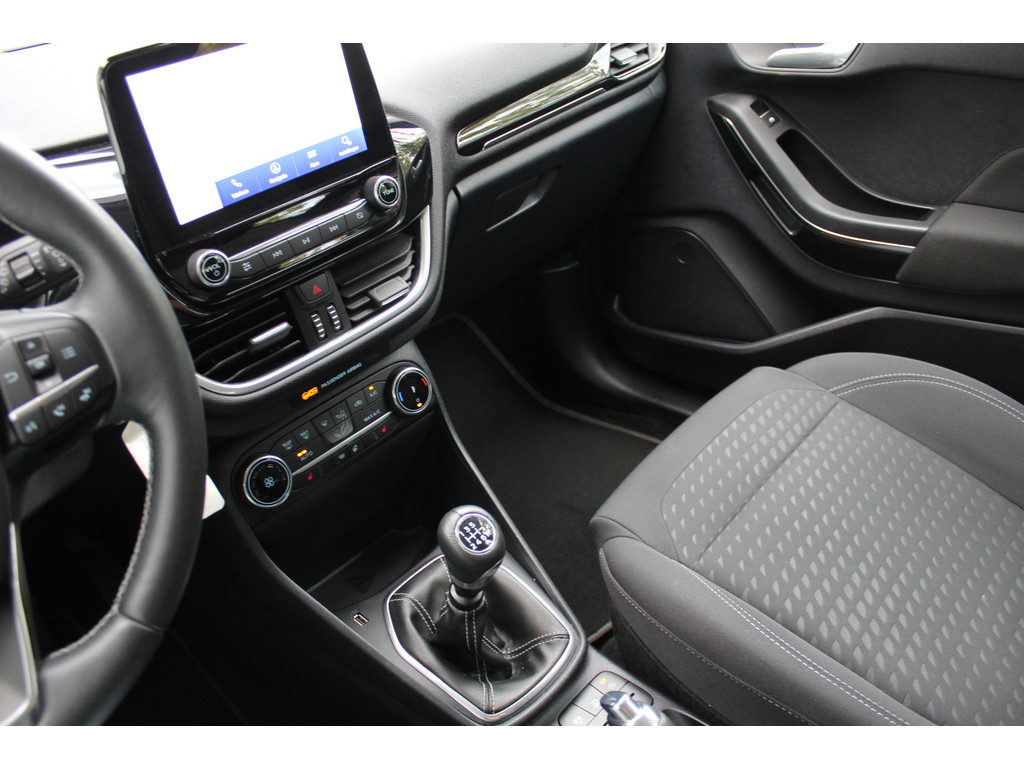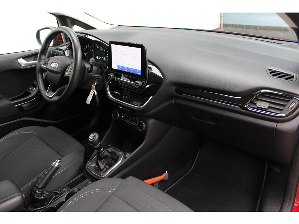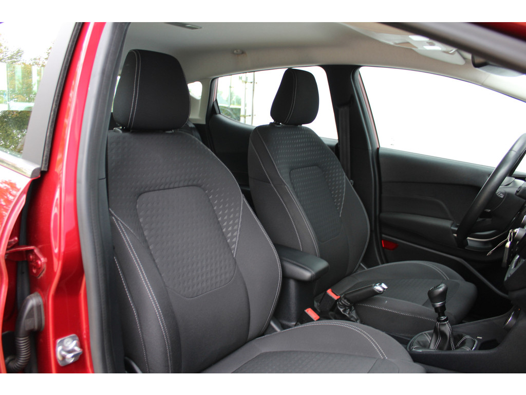 De Ford Fiesta is uw trouwe partner onderweg, want hij houdt continu voor u de situatie op en om de weg in de gaten. Volautomatische veiligheidssystemen kunnen daarbij ingrijpen om u voor gevaarlijke situaties te behoeden. Het Lane-keeping systeem garandeert dat u zich niet onverhoeds buiten de lijnen van de rijstrook begeeft. Vermoeidheidsherkenning is een systeem dat met verschillende sensoren tekenen van vermoeidheid bij de chauffeur waarneemt. Deze krijgt tijdig een waarschuwing, wat ongelukken kan voorkomen. Deze Ford Fiesta is voorzien van Brake Assist, die extra remkracht geeft bij een noodstop. Met voorzieningen als hill hold functie en bandenspanningcontrolesysteem, bent u altijd veilig onderweg.