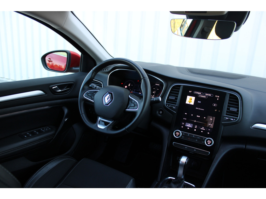 Voor het overzicht tijdens iedere rit is deze Renault Mégane Estate voorzien van een gemakkelijk afleesbaar digitaal dashboard. Hoeveel ruimte heeft u nog bij het inparkeren? De achteruitrijcamera brengt helder in beeld wat zich achter de auto bevindt en geeft een geluidssignaal. Adaptive cruise control is veilig en comfortabel. De snelheidsregelaar houdt automatisch afstand tot het voertuig dat voor u rijdt. Je weet altijd waar je moet zijn, dankzij het navigatiesysteem. In een auto als deze kunt u niet zonder automatische airconditioning, zodat de temperatuur altijd goed is. Met DAB ontvangst, regensensor, keyless entry, automatisch dimmende binnenspiegel, isofix-aansluiting en centrale deurvergrendeling met afstandsbediening is deze Renault helemaal compleet.