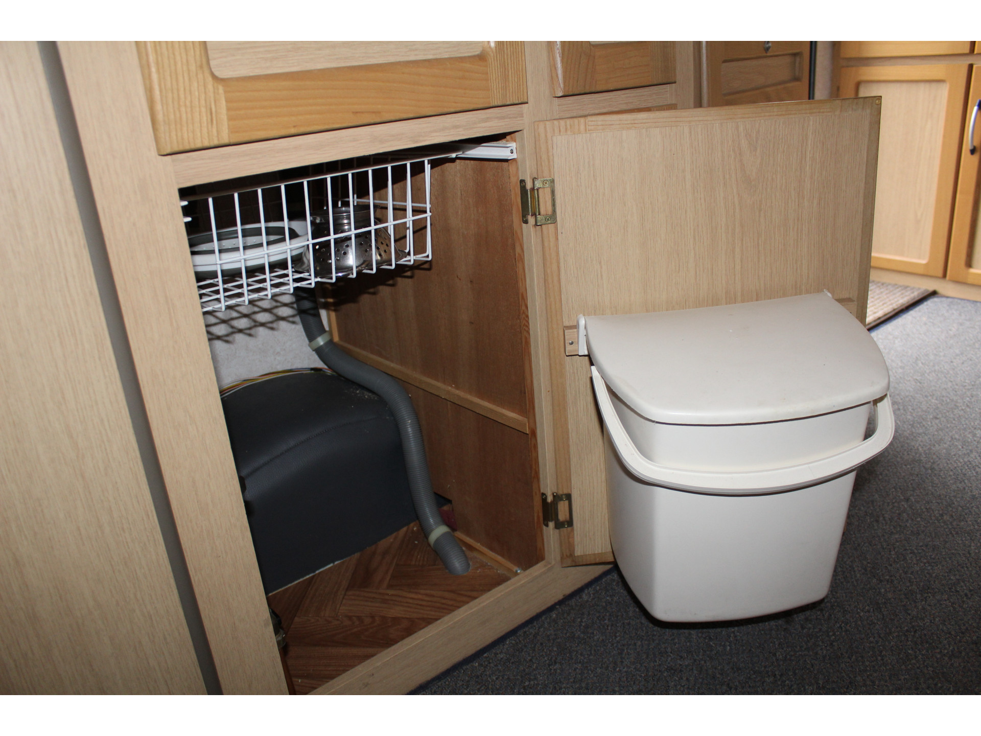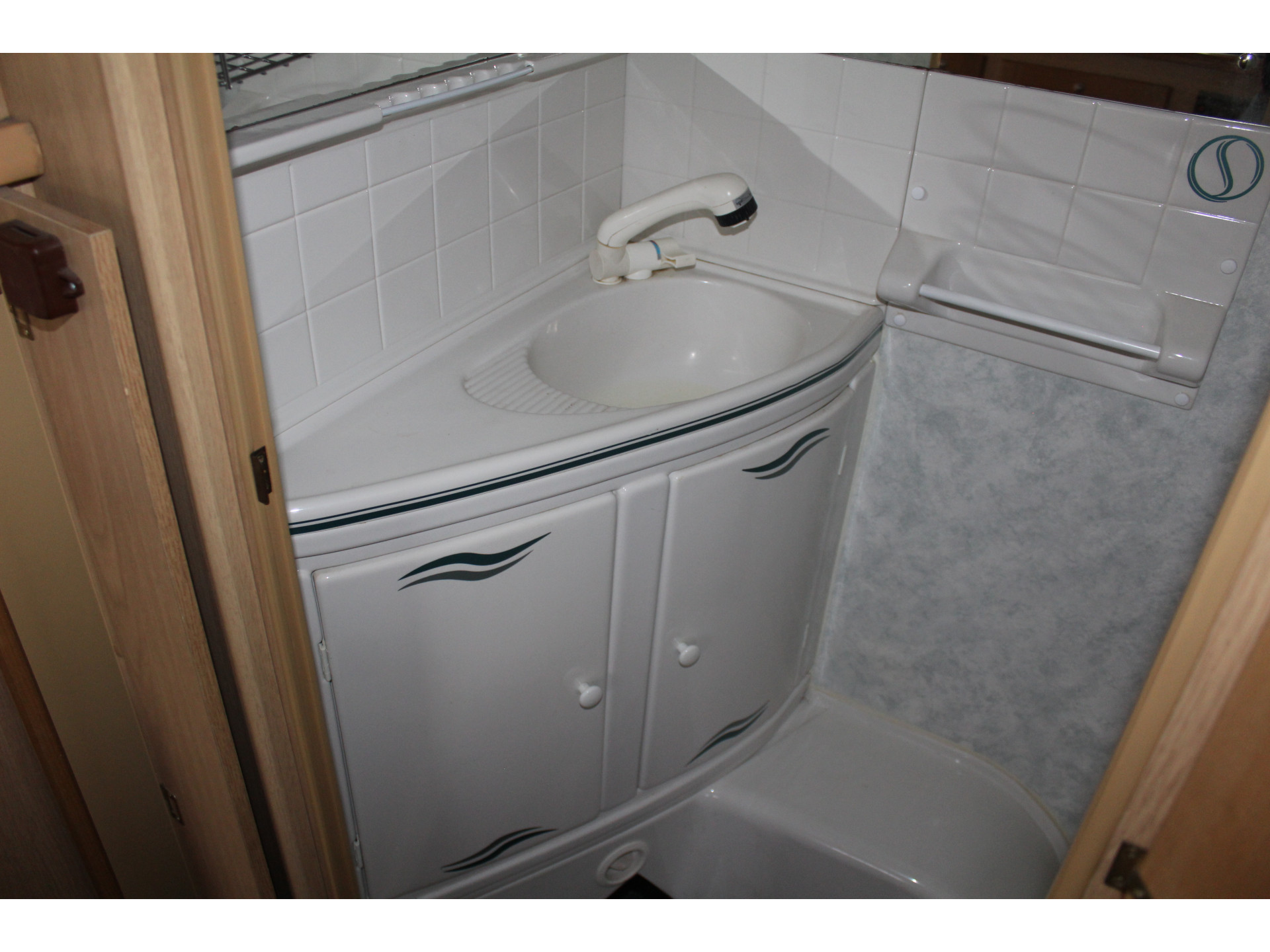 Toiletruimte met wastafel en chemisch toilet.