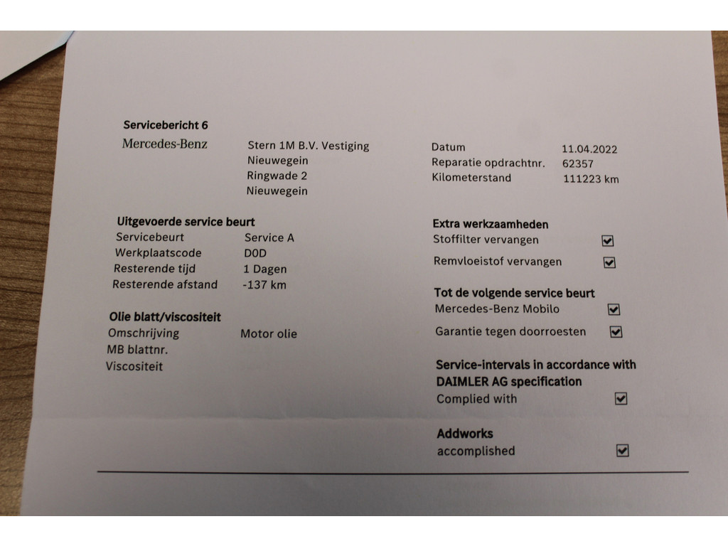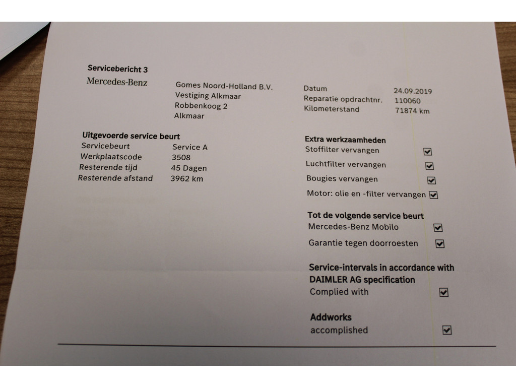 - Onderhoud volgens schema - Nieuwe APK keuring - Nationale autopas - Poetsen van de auto - 25 euro brandstof - Tenaamstelling voertuig - Vrijwaren inruilauto indien van toepassing