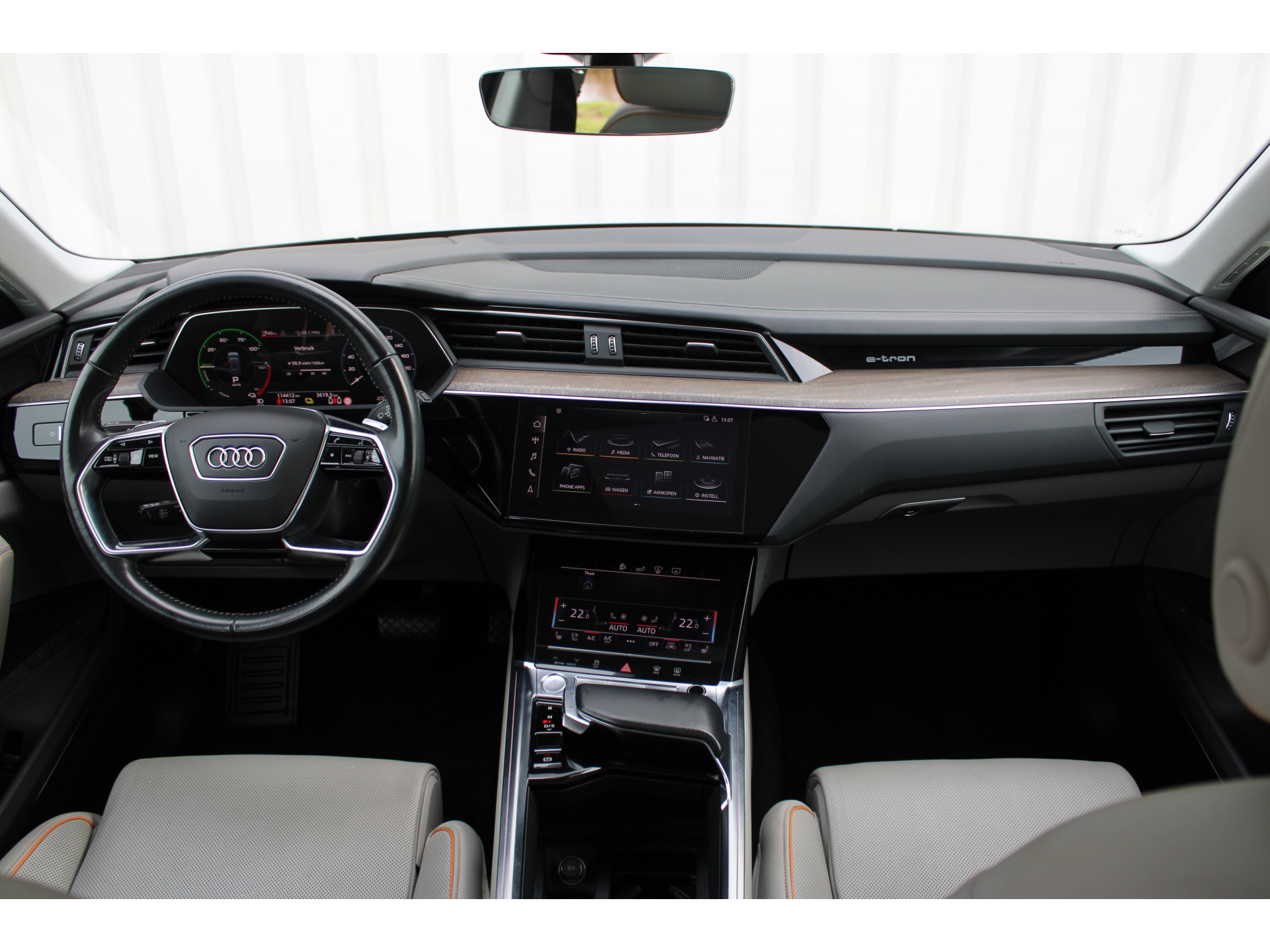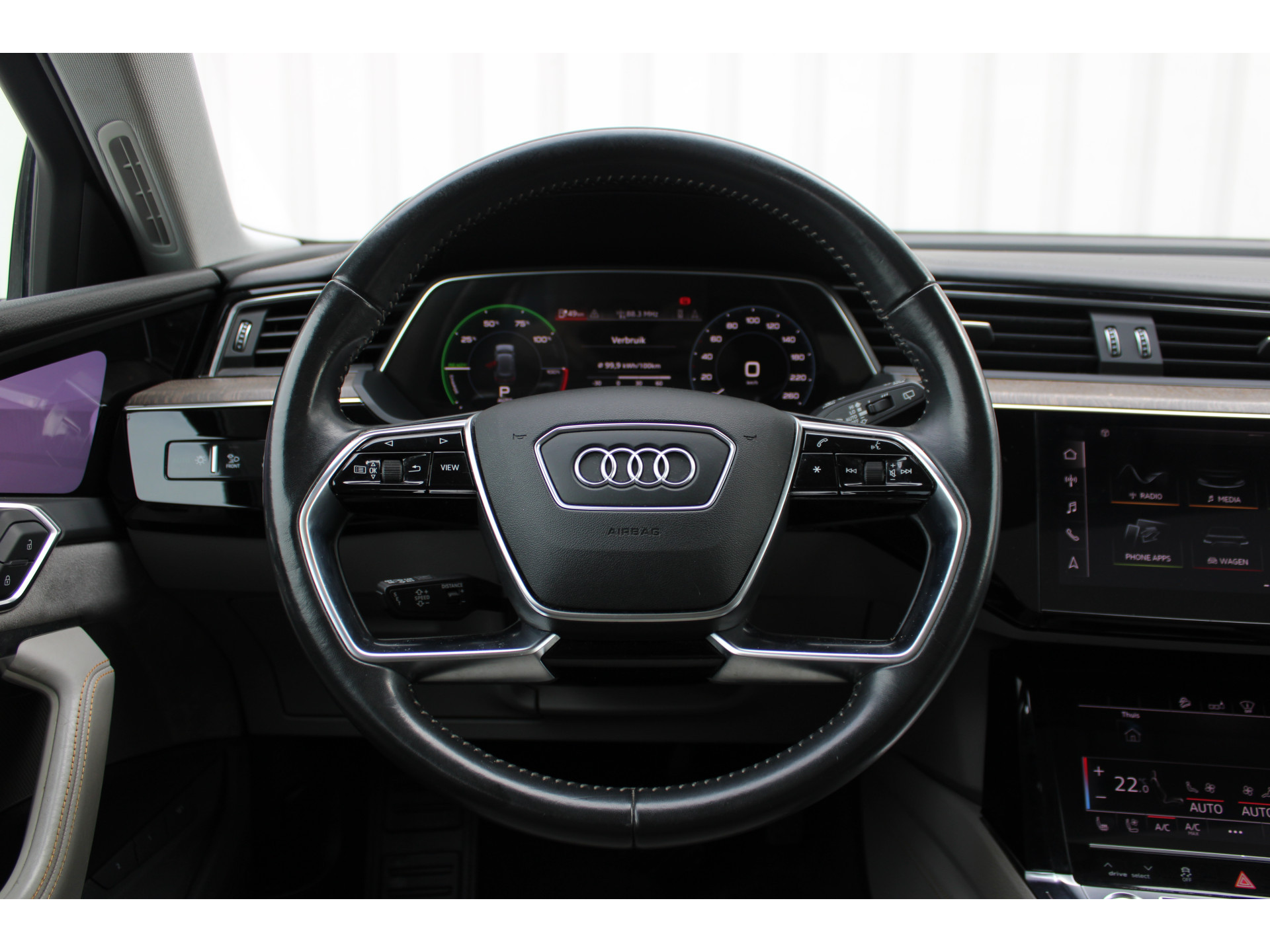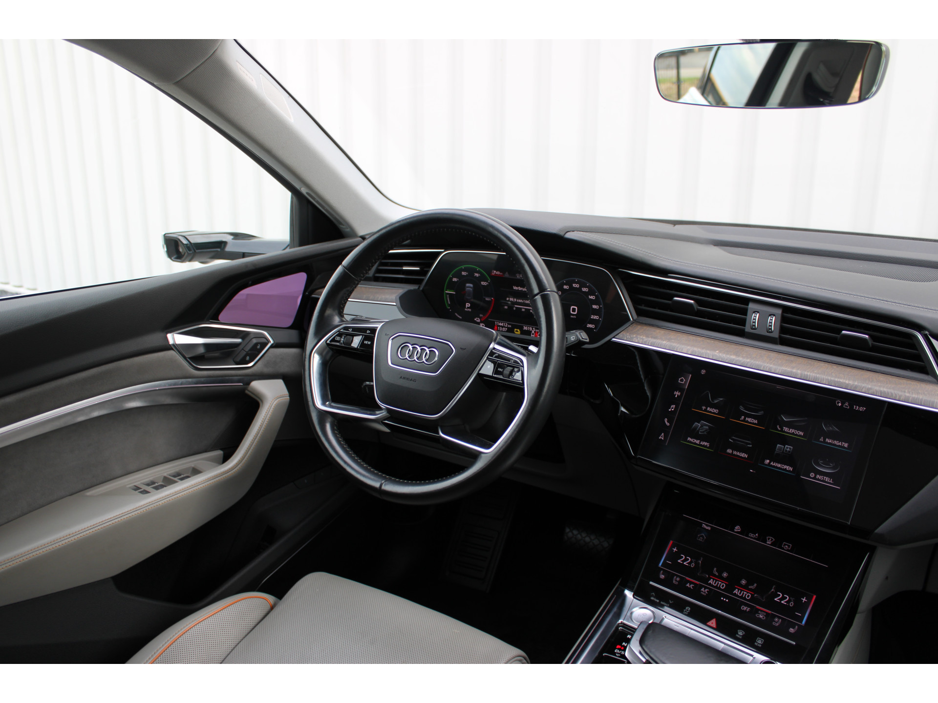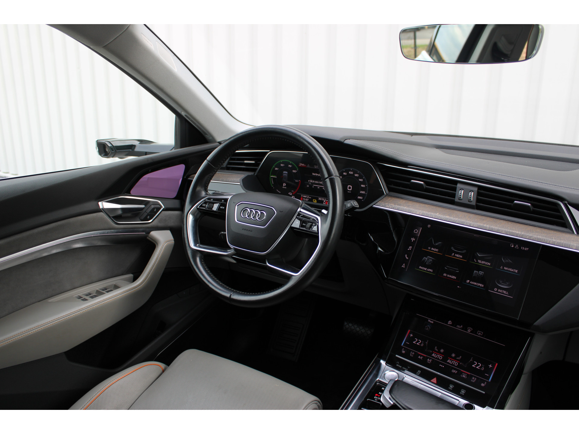 Het maakt niet uit of u binnen of buiten de stad rijdt. Het rijbereik van deze elektrische Audi e-tron biedt u alle vrijheid om te gaan en te staan waar u wilt. Met de elektromotor rijdt u stil en snel de toekomst in. Maar ook schoon en zuinig. De krachtige motor geeft deze Audi uitstekende prestaties. De reis kan niet lang genoeg duren, terwijl u kilometer na kilometer plezier heeft van het elektrisch bediende glazen panorama dak en het lederen interieur. 's Winters komen de verwarmbare voorstoelen heerlijk van pas. En ze zijn ook nog eens voorzien van massagefunctie. Laat die bochten maar komen! In de sportstoelen zitten u en uw bijrijder altijd goed! Voortaan hoeft niemand u meer te vragen of u een goede reis hebt gehad. De luchtvering en de comfortstoelen maken elke rit een verademing. Vergeet halogeen; deze koplampen gebruiken de allernieuwste matrix LED-technologie met maximale lichtopbrengst zonder de tegenligger te hinderen. Tot de voorzieningen van deze auto behoren 21 inch lichtmetalen velgen, geluidsisolerende ramen en LED-achterlichten.