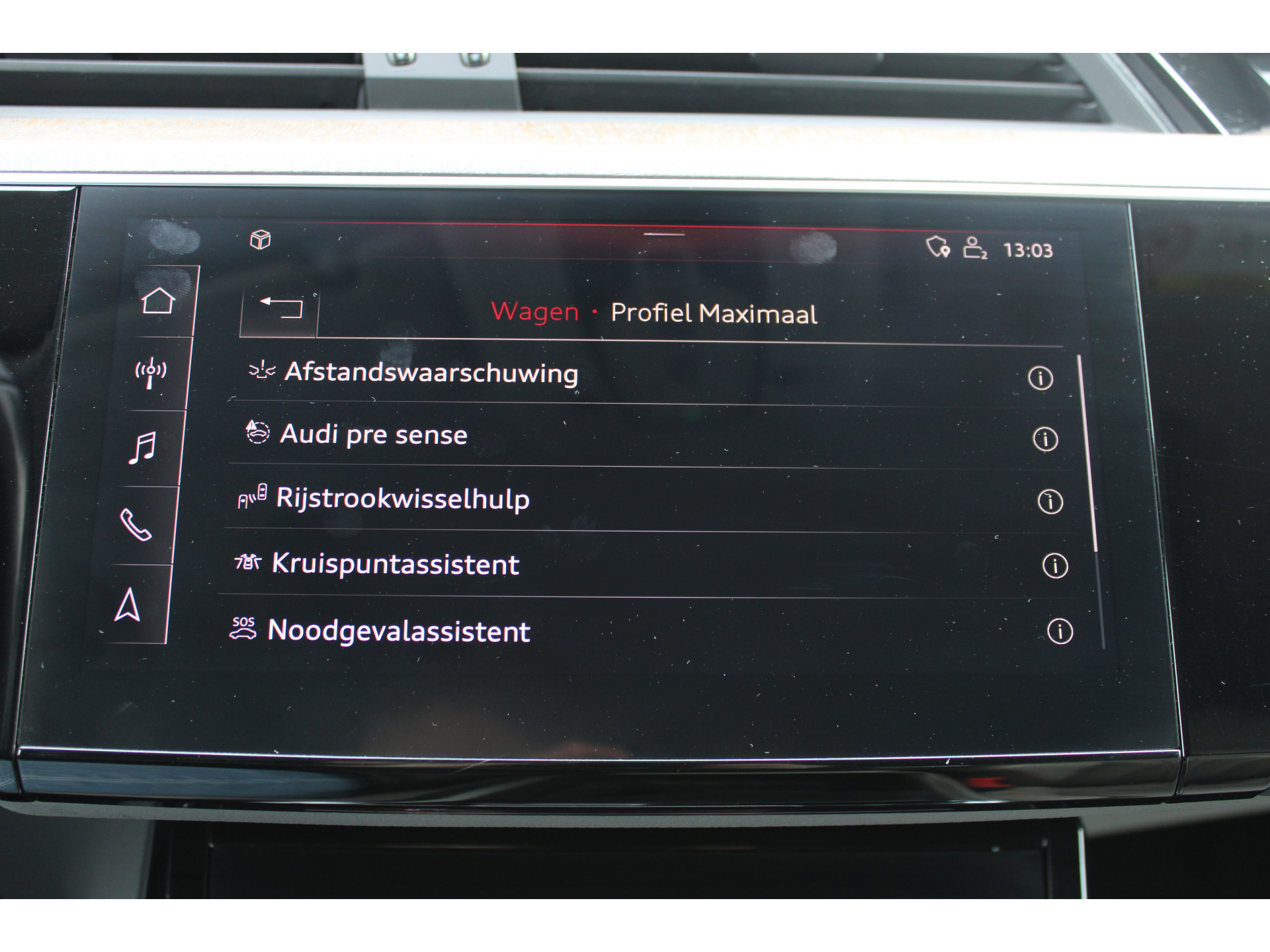 De nieuwste veiligheidssystemen komen in deze Audi e-tron samen. In het instrumentarium laat de verkeersborddetectie de actuele verkeersborden zien. Keep your lane? Het Lane-keeping systeem zorgt er automatisch voor. De actieve dodehoekdetectie draagt bij aan uw eigen veiligheid en die van uw medeweggebruikers. Met voorzieningen als head-up display, City Safety System en autonoom remsysteem, bent u altijd veilig onderweg.