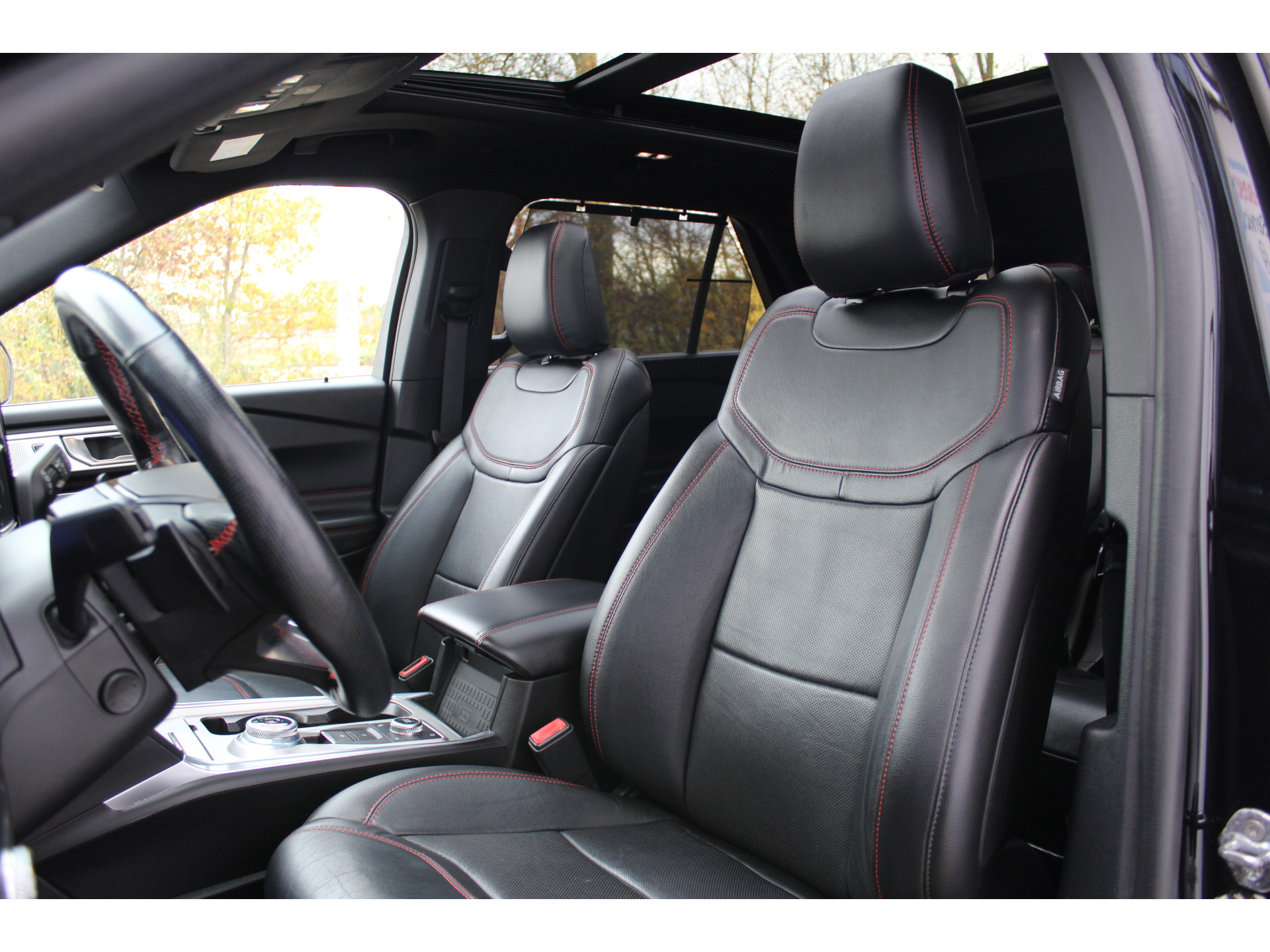 De nieuwste veiligheidssystemen komen in deze Ford Explorer samen. U rijdt ook veiliger omdat deze auto voor u de verkeersborden langs de weg kan lezen. De belangrijkste borden worden op uw instrumentarium geprojecteerd, zodat u ze niet kunt missen. Indien u onbedoeld de rijstrook lijkt te verlaten, reageert het Lane-keeping systeem meteen en corrigeert. Forward collision warning waarschuwt voor een kop-staart botsing. In deze Ford vinden we verder een dodehoekdetectie, hill hold functie, vermoeidheidsherkenning, autonoom remsysteem en bandenspanningcontrolesysteem.