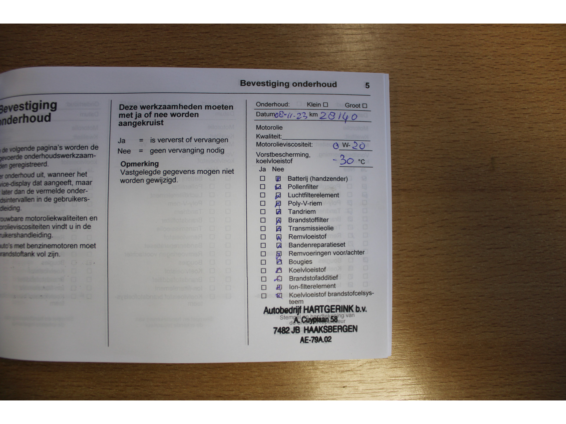 - Onderhoud volgens schema - Nieuwe APK keuring - Nationale autopas - Poetsen van de auto - 25 euro brandstof - Tenaamstelling voertuig - Vrijwaren inruilauto indien van toepassing