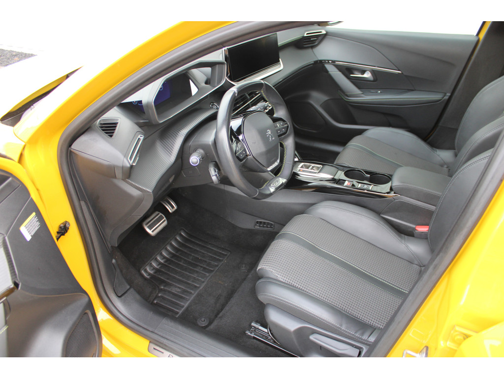 Wekt u zelf stroom op of kiest u voor een openbaar laadpunt? Met de Peugeot e-208 kunt u overal terecht. Zo wordt elektrisch rijden wel heel erg aantrekkelijk! Dankzij de geavanceerde batterijtechnologie hebt u met deze auto een rijbereik dat ruim voldoende is voor de meeste dagelijkse ritten. En u zult zien, de tijd die nodig is om de batterij op te laden, valt enorm mee. Ga samen met uw bijrijder lekker zitten in de verwarmbare voorstoelen. De sportstoelen zorgen voor een strak uiterlijk én een uitstekende zitsteun. Het glazen panoramadak geeft ook doordeweeks een vakantiegevoel. Wat een licht en zicht! Bij de zeer complete uitrusting van deze auto behoren ook LED-dagrijverlichting, donker getint glas achter, in delen neerklapbare achterbank en LED-achterlichten.