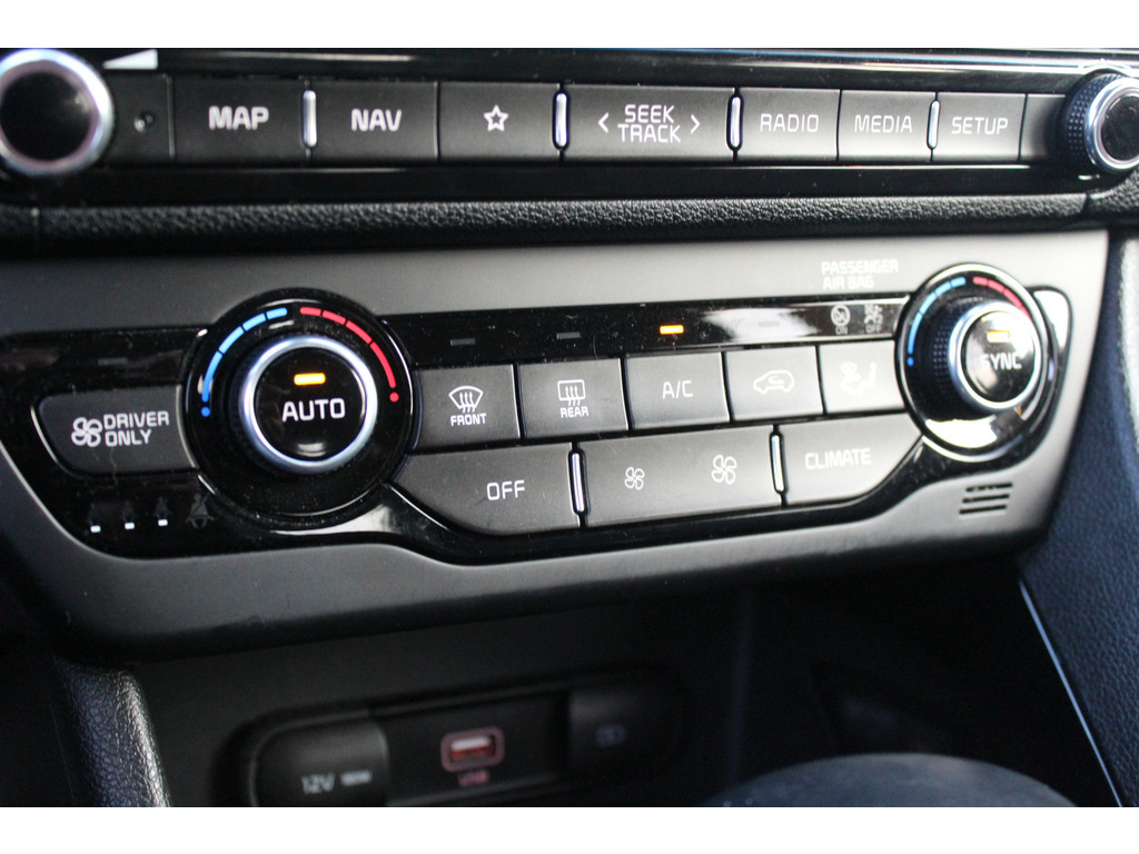 Met behulp van de achteruitrijcamera kunt u zo strak inparkeren als u maar wilt! Adaptive cruise control houdt de ingestelde snelheid vast en houdt automatisch afstand tot uw voorligger. Als u regelmatig met een aanhanger of een fietsendrager op pad bent, is de afneembare trekhaak een praktische extra. Een optie die de veiligheid verhoogt, is de bediening vanaf het stuur van het audiosysteem (met DAB-radio!) en het full map navigatiesysteem. Nooit meer te warm of te koud. De automatische airconditioning zorgt altijd voor de temperatuur die u kiest. De uitrusting van deze Kia is met schakelpaddles aan het stuur, regensensor, keyless entry, automatisch dimmende binnenspiegel, isofix-aansluiting en bagage afdekhoes behoorlijk compleet.