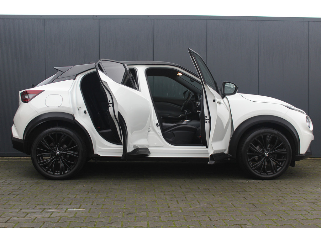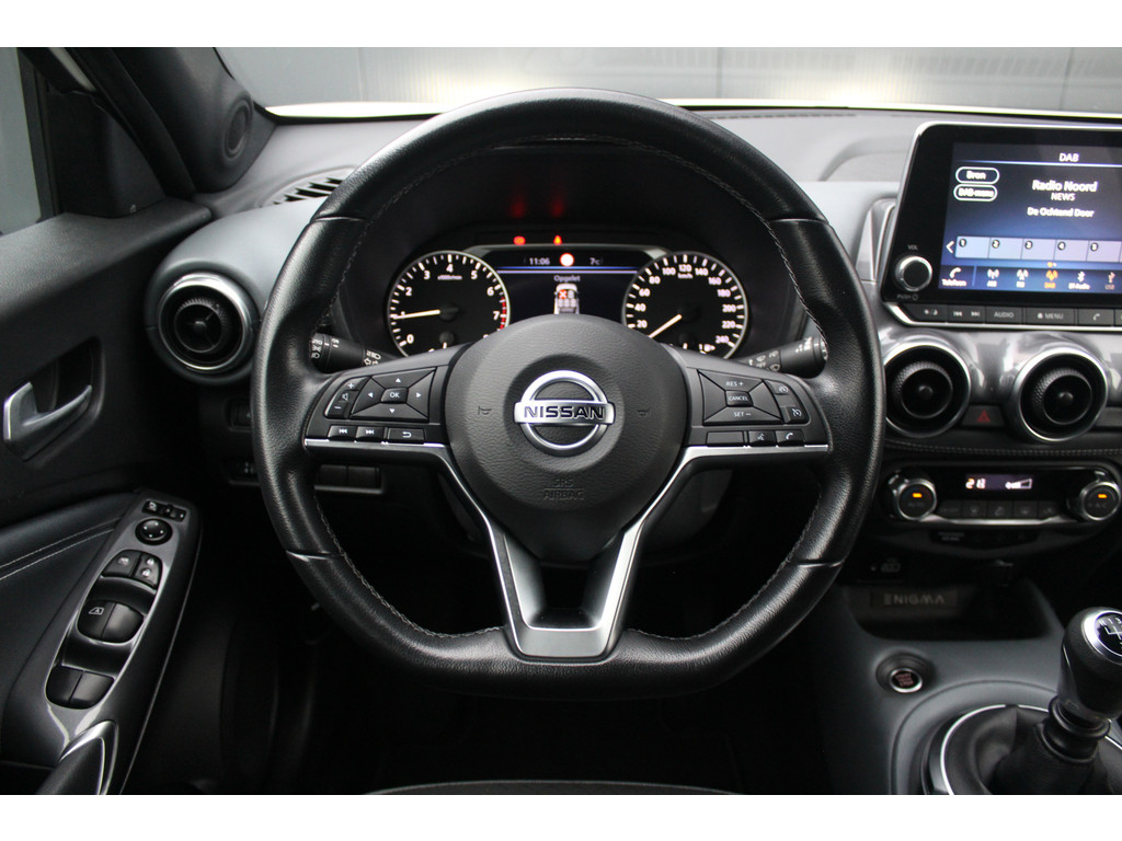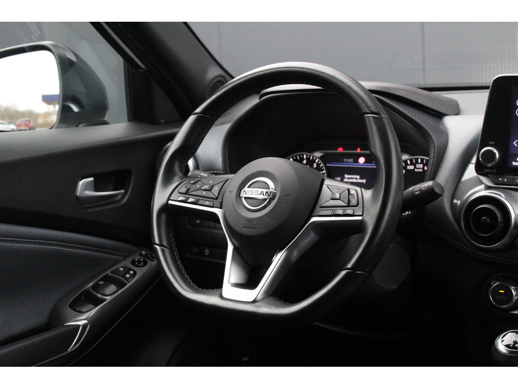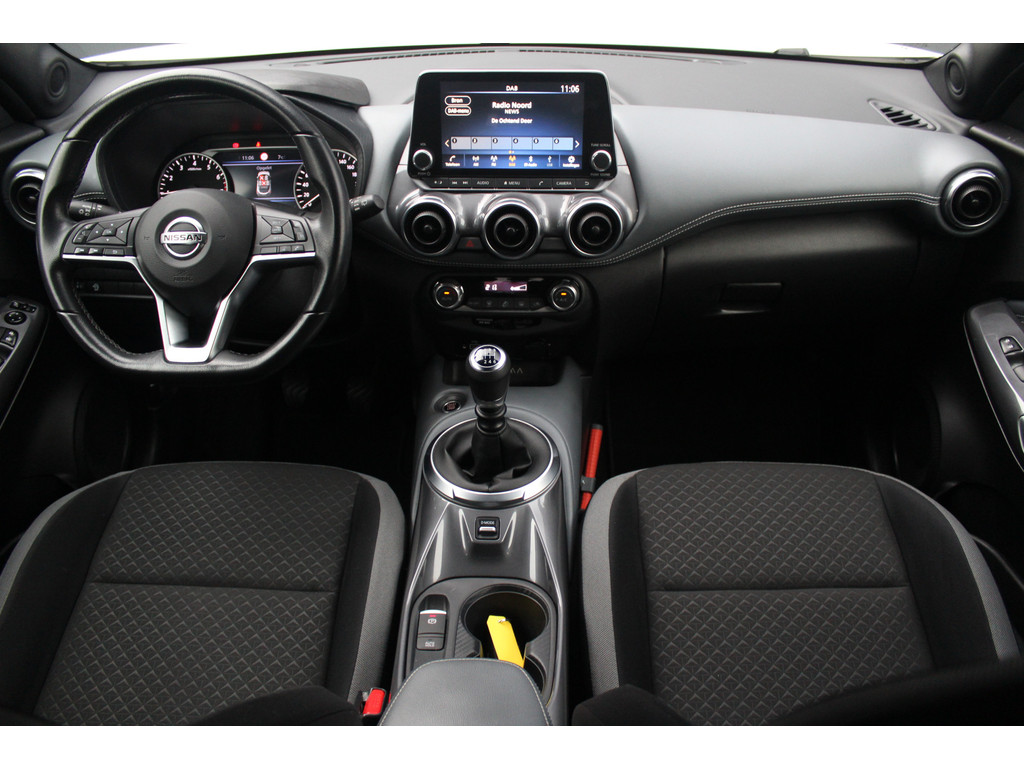 Stel de interface voor uw cockpit naar wens in met het digitale dashboard van deze auto. Bij het inparkeren laat de achteruitrijcamera precies zien hoeveel meter... decimeter... centimeter ruimte er nog is! Via uw smartphone en Connected Services checkt u eenvoudig de belangrijke functies van de auto, overal en altijd. Met spraakbediening of de knoppen op het stuur regelt u het audiosysteem, terwijl u uw blik op de weg gericht houdt. De audio-installatie biedt daarbij glasheldere ontvangst dankzij DAB-ontvangst. Aan boord van deze Nissan Juke is een achteropkomend verkeer waarschuwing voor extra veiligheid. Natuurlijk behoren WIFI-hotspot, automatische airconditioning, regensensor, cruise control, keyless entry en automatisch dimmende binnenspiegel ook tot de uitrusting van deze complete auto.