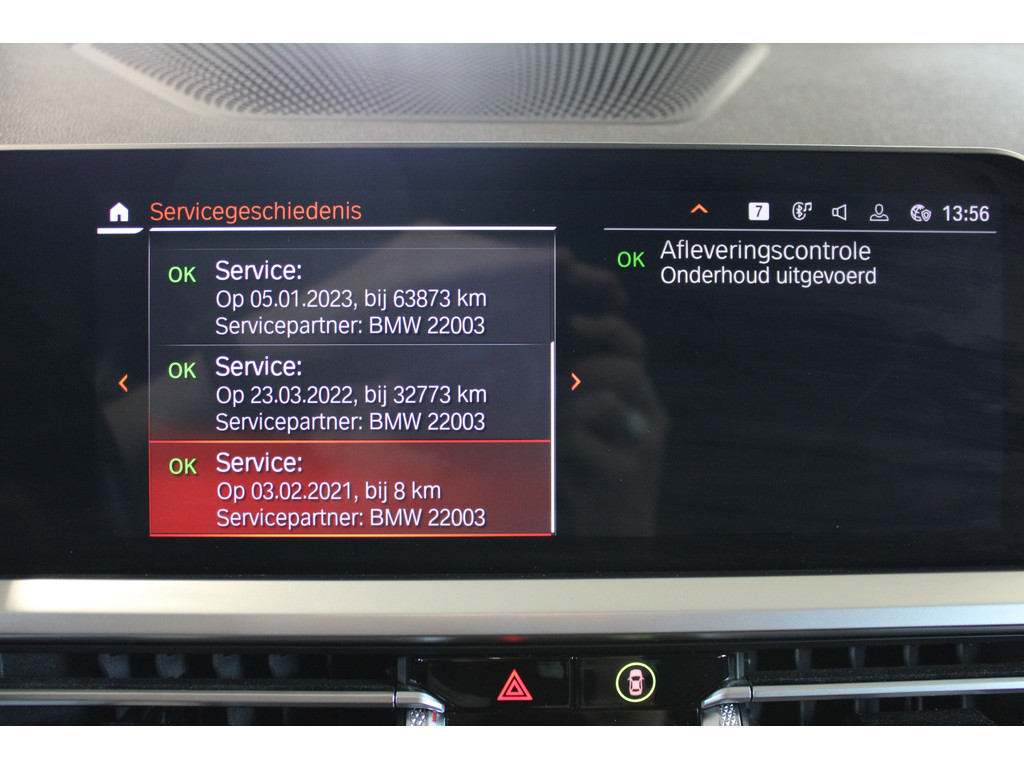 Deze BMW is voorzien van verschillende intelligente veiligheidsvoorzieningen. Ze kijken tijdens het rijden als het ware met u mee, ze signaleren potentieel gevaarlijke situaties en in een aantal gevallen kunnen ze ook ingrijpen. De camera van de verkeersborddetectie herkent verschillende soorten verkeersborden en toont deze op het dashboard. Onbedoeld buiten de rijstrook raken wordt voorkomen door het Lane-keeping systeem. Onbedoeld bumperkleven is er niet bij, dankzij de forward collision warning. Die waarschuwt direct als een botsrisico met uw voorligger dreigt. U bent mede dankzij hill hold functie, brake assist, vermoeidheidsherkenning en bandenspanningcontrolesysteem steeds veilig onderweg.