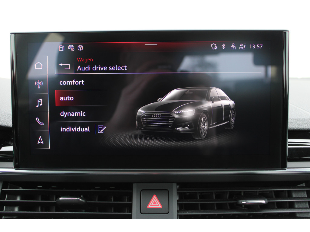 Altijd de benodigde functies in beeld? Het digitale dashboard zorgt ervoor. Pech of storing, altijd vervelend. Maar met Connected Services weet u direct wat eraan scheelt. En dus ook wat er moet gebeuren. Een optie die de veiligheid verhoogt, is de bediening vanaf het stuur van het audiosysteem (met DAB-radio!) en het MMI navigatiesysteem. Als u wilt kunt u beiden zelfs met uw stem bedienen. In een auto als deze kunt u niet zonder automatische airconditioning, zodat de temperatuur altijd goed is. Boem is ho? Niet bij deze Audi A4 Limousine. De piepjes van de parkeersensoren waarschuwen u op tijd voor obstakels. En deze auto heeft ook WIFI-hotspot, schakelpaddles aan het stuur, regensensor, cruise control, automatisch dimmende binnenspiegel en isofix-aansluiting als standaard uitrusting.