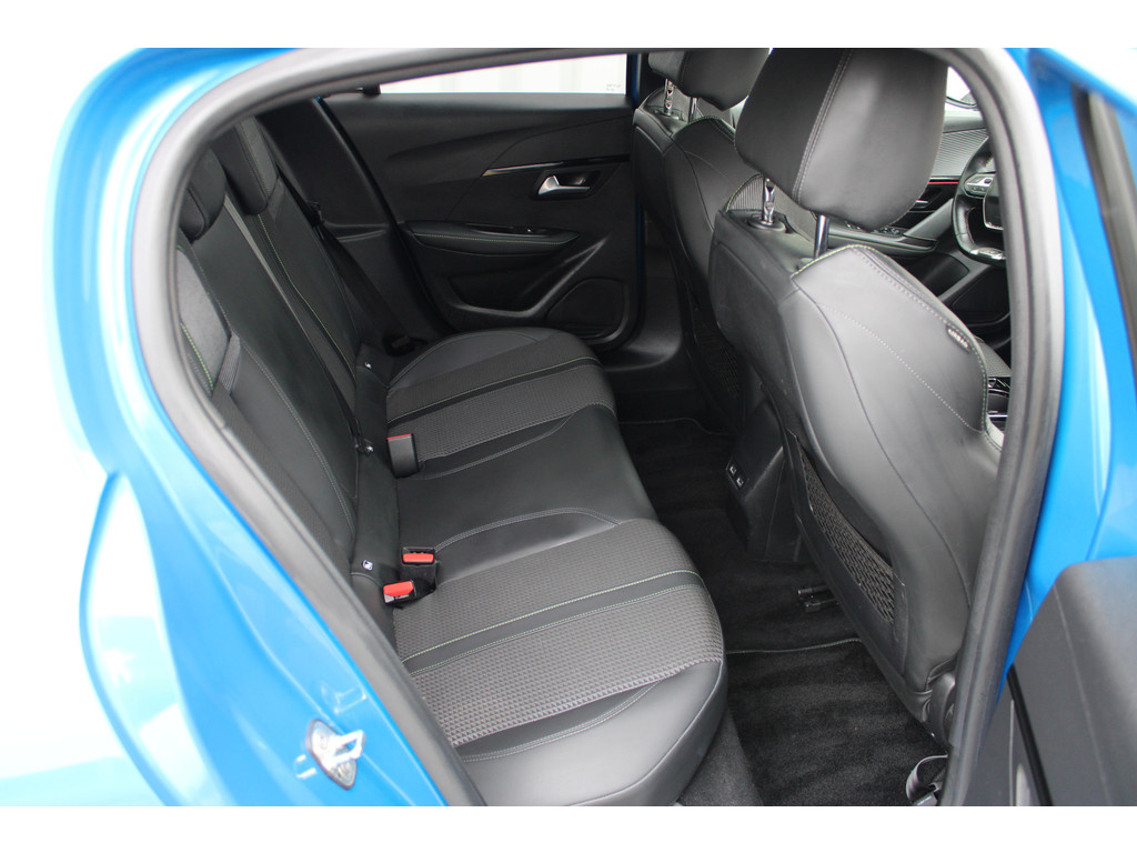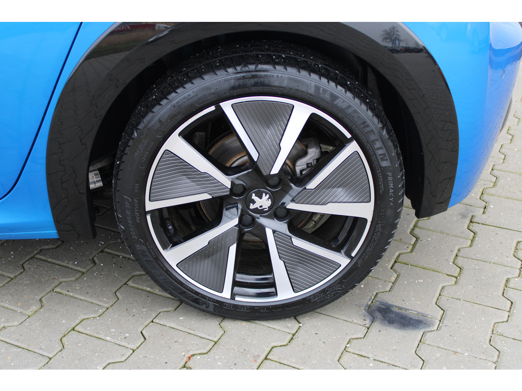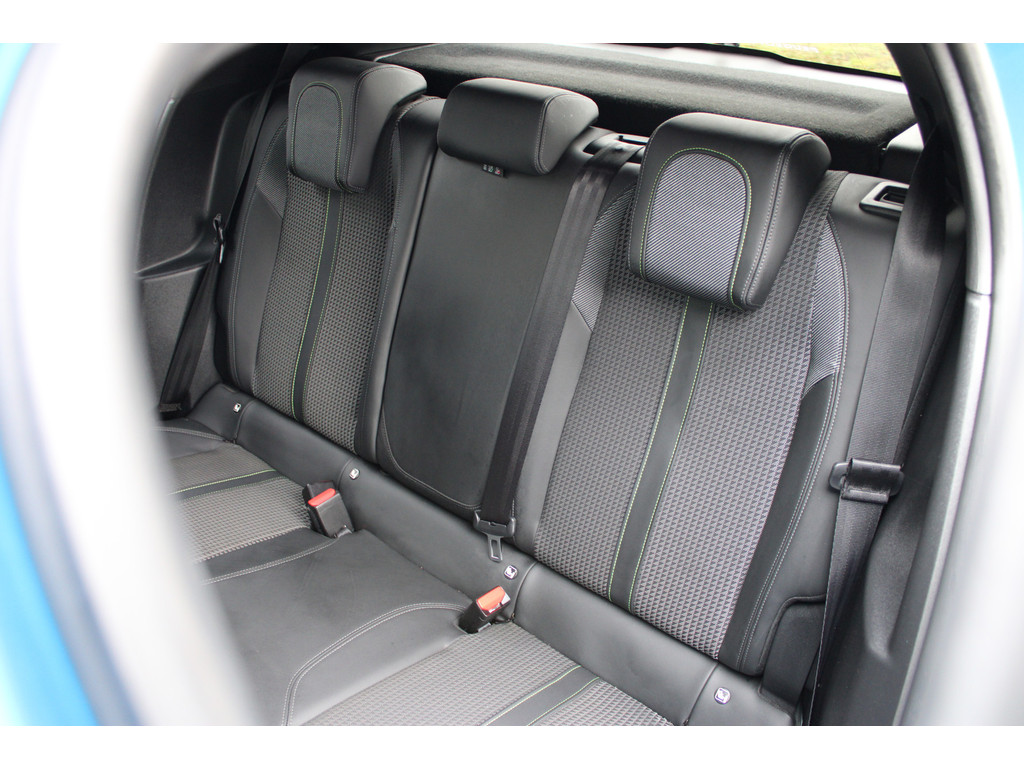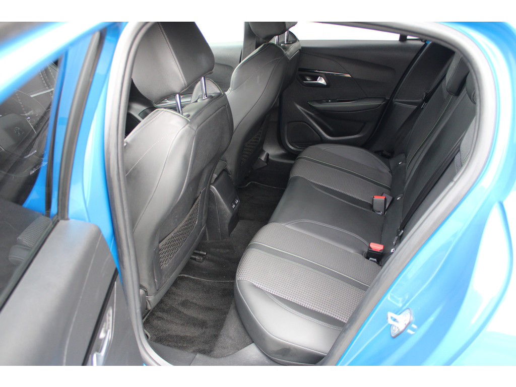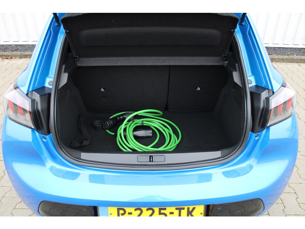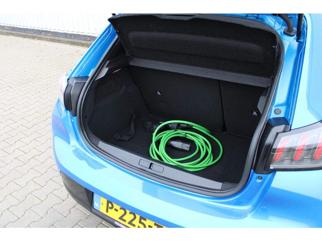 Zoals u mag verwachten van deze Peugeot e-208 is hij uitgerust met een reeks aan actieve veiligheidssystemen. De camera van de verkeersborddetectie herkent verschillende soorten verkeersborden en toont deze op het dashboard. Het Lane-keeping systeem garandeert dat u zich niet onverhoeds buiten de lijnen van de rijstrook begeeft. De actieve dodehoekdetectie helpt ongelukken te voorkomen. In deze Peugeot vinden we verder een forward collision warning system, vermoeidheidsherkenning, autonoom remsysteem en bandenspanningcontrolesysteem.