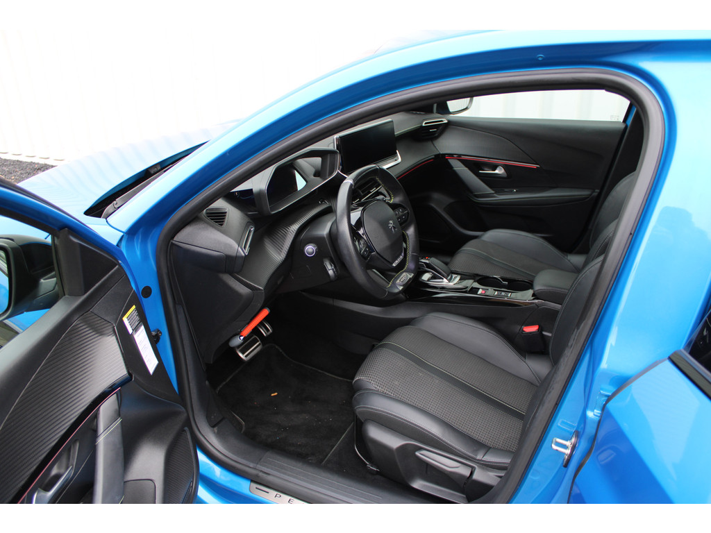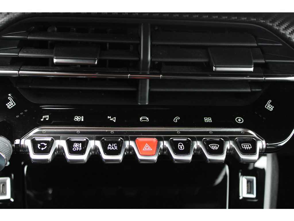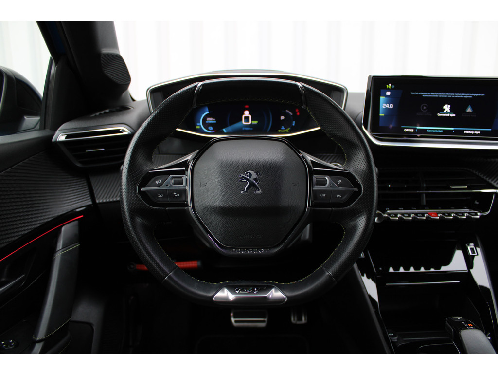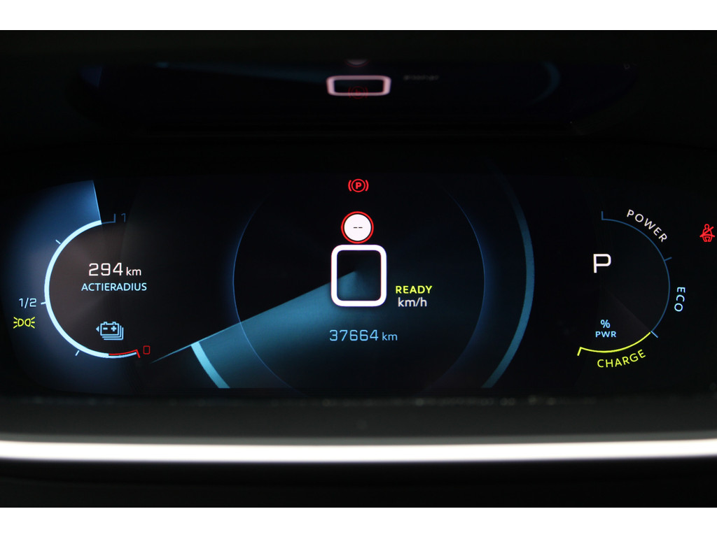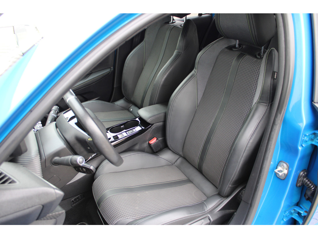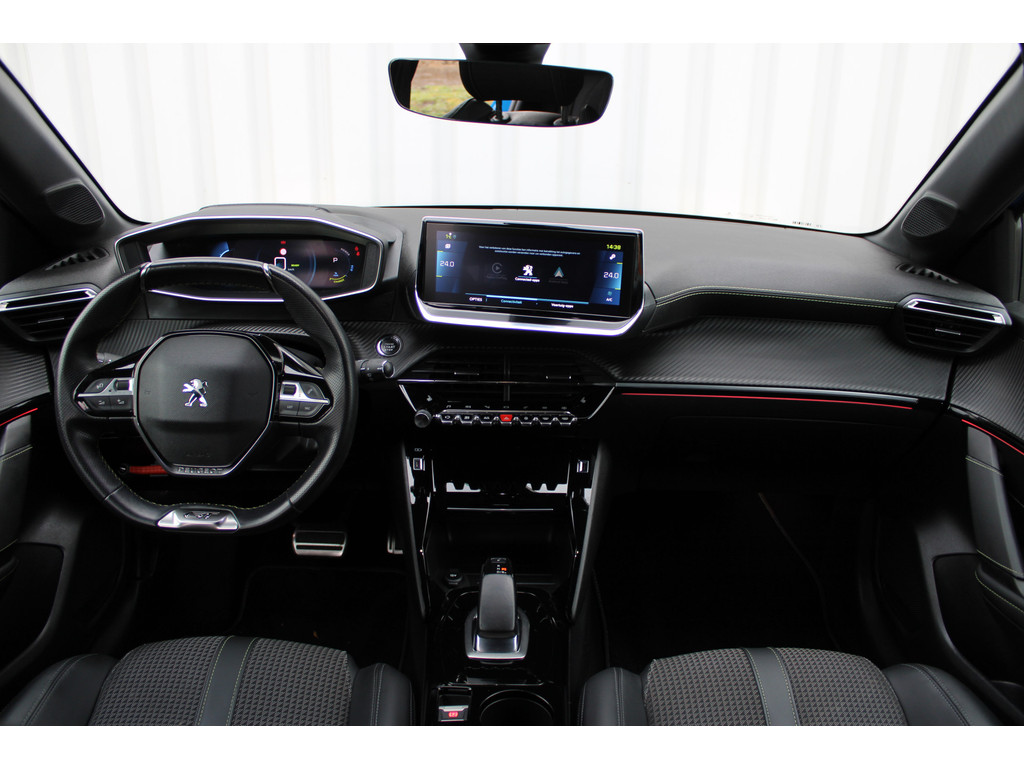 Zoals u mag verwachten van deze Peugeot e-208 is hij uitgerust met een reeks aan actieve veiligheidssystemen. De camera van de verkeersborddetectie herkent verschillende soorten verkeersborden en toont deze op het dashboard. Het Lane-keeping systeem garandeert dat u zich niet onverhoeds buiten de lijnen van de rijstrook begeeft. De actieve dodehoekdetectie helpt ongelukken te voorkomen. In deze Peugeot vinden we verder een forward collision warning system, vermoeidheidsherkenning, autonoom remsysteem en bandenspanningcontrolesysteem.