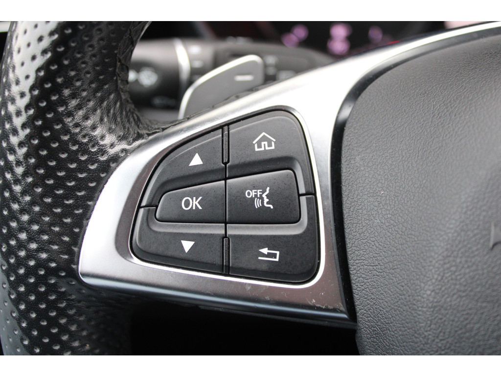 Kom maar, kom maar, kom maar... ho! Prettig hoor, zo'n achteruitrijcamera. In één oogopslag weet u de complete systeemstatus van deze auto. Dankzij Connected Services. In deze auto beschikt u natuurlijk over een full map navigatiesysteem. Het audio-installatiesysteem biedt glasheldere geluidskwaliteit. U bedient dit veilig, via het stuurwiel of met spraakbediening. Automatische airconditioning verwarmt of koelt het interieur met een druk op de knop. Het hoort bij een intelligente auto als deze dat hij zelf in staat is om zijn omgeving in de gaten te houden. Dat doet deze Mercedes-Benz met een automatisch inschakelbare verlichting en een regensensor. En deze auto heeft ook schakelpaddles aan het stuur, cruise control met snelheidsbegrenzer, isofix-aansluiting, centrale deurvergrendeling met afstandsbediening en bagage afdekhoes als standaard uitrusting.