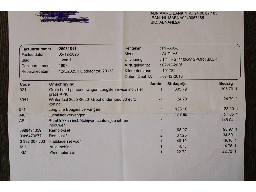 - Onderhoud volgens schema - Nieuwe APK keuring - Nationale autopas - Poetsen van de auto - 25 euro brandstof - Tenaamstelling voertuig - Vrijwaren inruilauto indien van toepassing