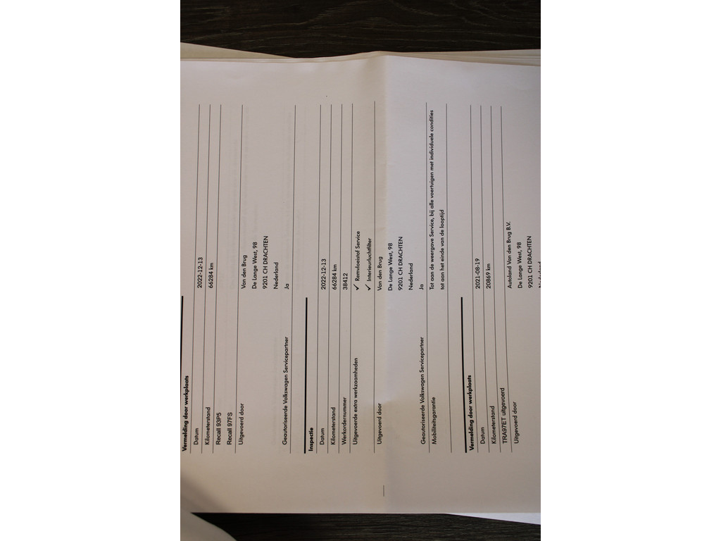 - Onderhoud volgens schema - Nieuwe APK keuring - Nationale autopas - Poetsen van de auto - 25 euro brandstof - Tenaamstelling voertuig - Vrijwaren inruilauto indien van toepassing