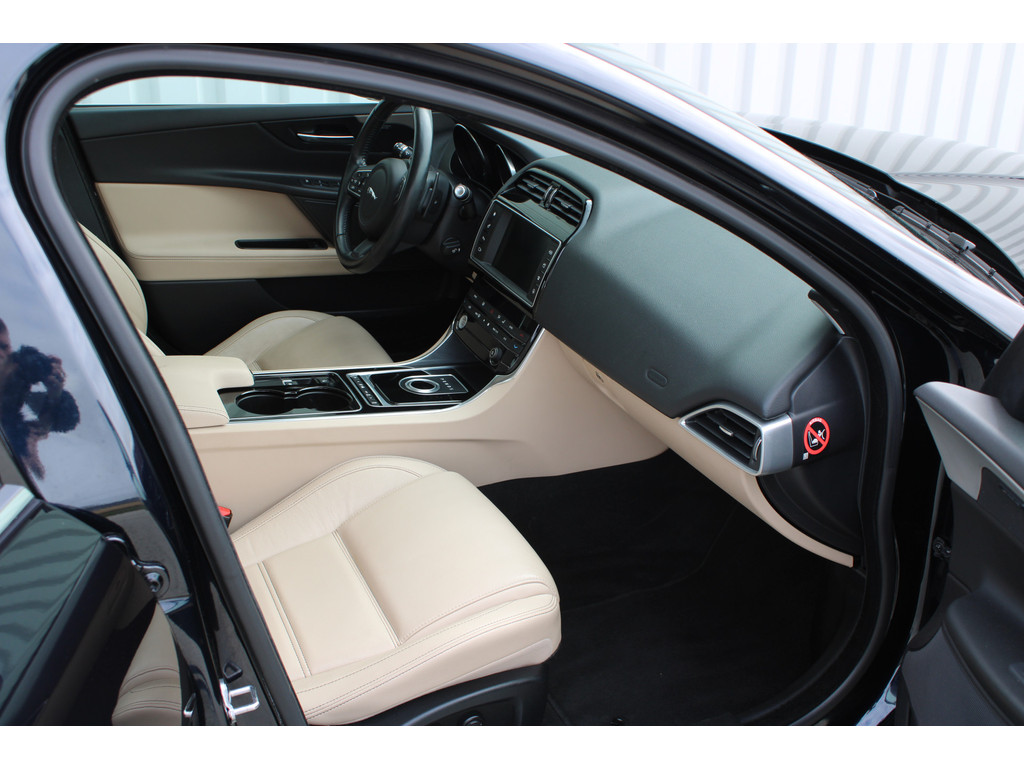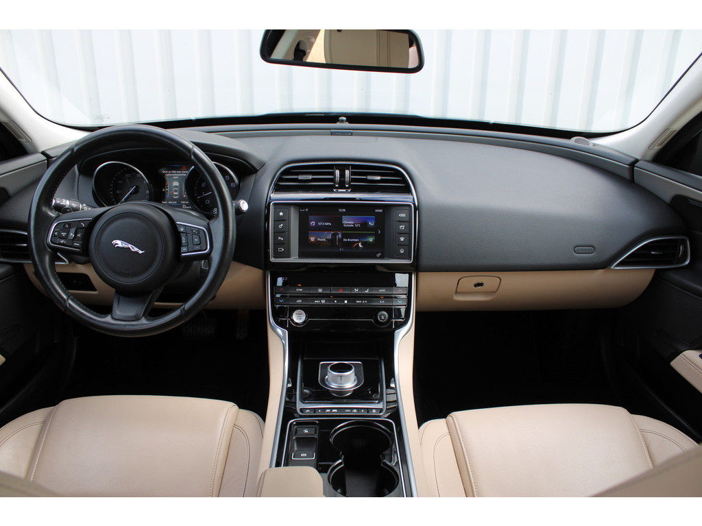 Niets achter deze auto blijft verborgen door de achteruitrijcamera. Een veilig gevoel! Net als een smartphone of een slimme speaker kunt u deze auto bedienen met stemcommando's. Prettig, altijd weten waar je moet zijn en hoe lang de rit nog duurt met het navigatiesysteem. Met automatische airconditioning hoeft u alleen de gewenste temperatuur in te stellen. Het systeem doet de rest. Achter het stuur van deze Jaguar bent u niet alleen. De auto kijkt als het ware met u mee tijdens de rit. De regensensor schakelt de ruitenwissers in als het nodig is en de automatisch inschakelbare verlichting doet de lichten voor u aan. Ook cruise control, lederen stuur, isofix-aansluiting, centrale deurvergrendeling met afstandsbediening en boordcomputer horen tot de voorzieningen op deze auto.
