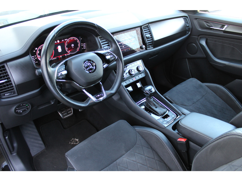 Een echt goede auto biedt meer dan alleen maar hoge prestaties en een comfortabele rit. Zo'n auto verrijkt uw leven door een optimale combinatie van doordachte vormgeving en hoogstaande techniek. Deze ŠKODA Kodiaq is daar een goed voorbeeld van. De aandrijving komt voor rekening van een benzinemotor en een automatische transmissie. Dankzij de stoelverwarming heeft u in deze auto nooit meer last van een koude rug of koude benen. De elektrisch bedienbare achterklep opent met een druk op de knop. Daglicht bij nacht? De koplampen met matrix LED-verlichting zorgen ervoor. Tot de voorzieningen van deze auto behoren 19 inch lichtmetalen velgen, halflederen bekleding, zwarte hemelbekleding, dakspoiler, donker getint glas achter en in delen neerklapbare achterbank.