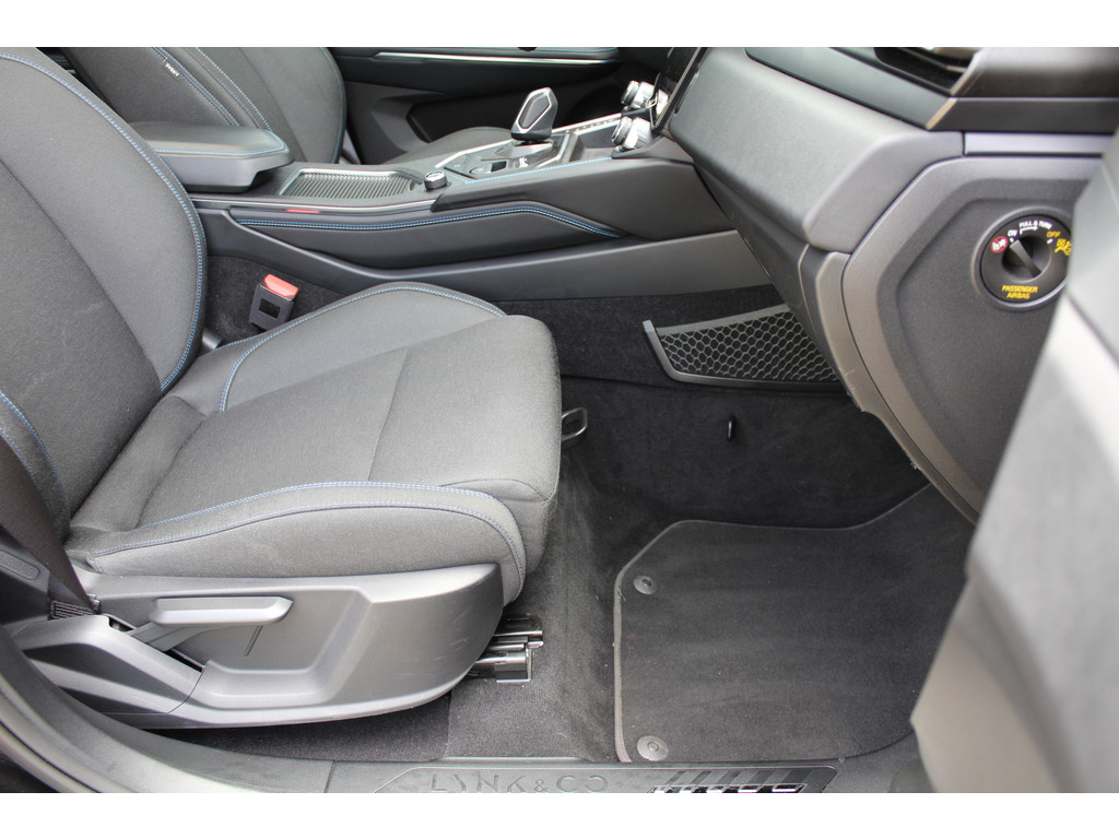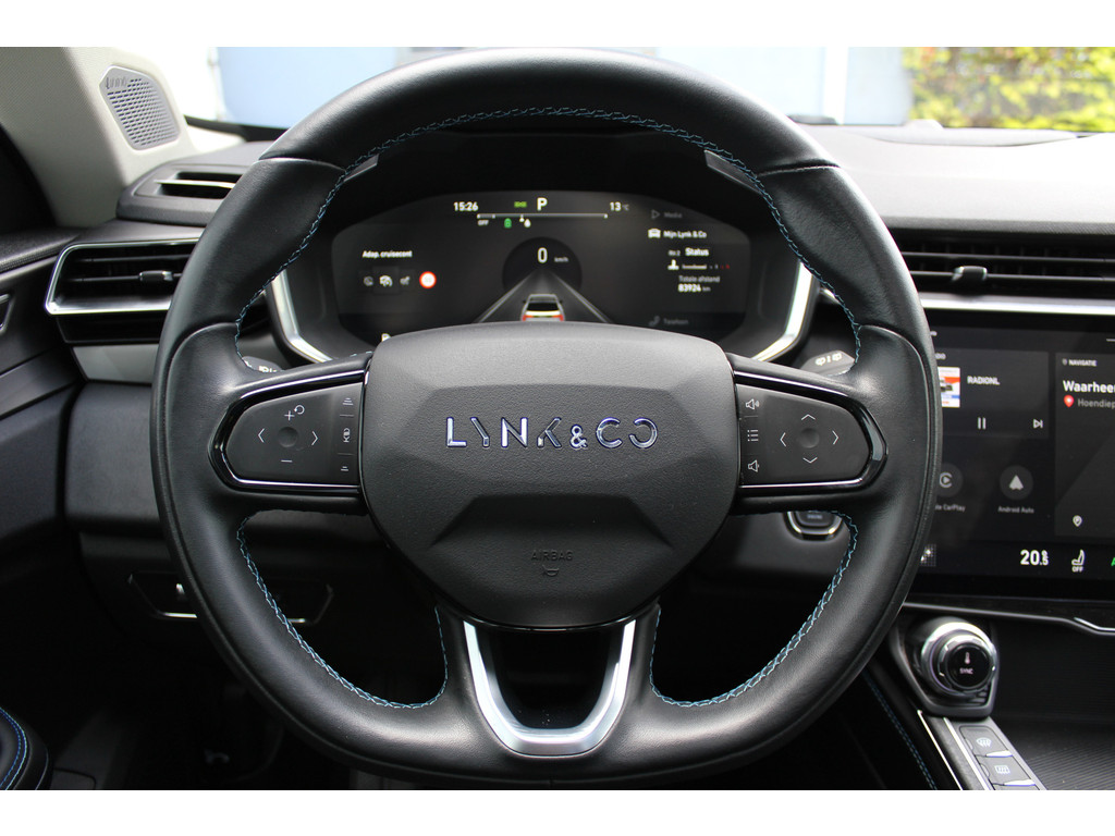 Pragmatisch en veilig als deze auto is, beschikt hij over diverse veiligheidssystemen. Onderweg zorgt verkeersborddetectie ervoor dat u geen waarschuwingsbord mist. Het Lane-keeping systeem zorgt voor een automatisch constante positie binnen de rijstrook. Afdwalen is uitgesloten. Kop-staartbotsingen vormen een belangrijk deel van de meest voorkomende aanrijdingen. De forward collision warning van deze auto voorkomt zulke botsingen geheel of reduceert de ernst van de schade aanzienlijk. Bovenop deze veiligheidsfeatures heeft deze Lynk & Co bovendien dodehoekdetectie, hill hold functie, brake assist en vermoeidheidsherkenning.